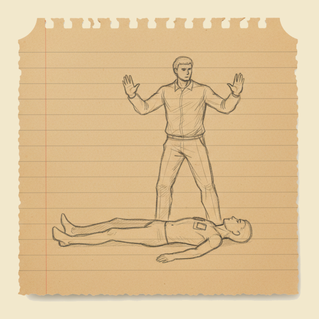 Call out clearly: "Everyone clear, shocking now." Two seconds of visual confirmation is the entire rescuer-safety habit, and it is the one habit that prevents the small risk of a bystander getting an unintended shock.