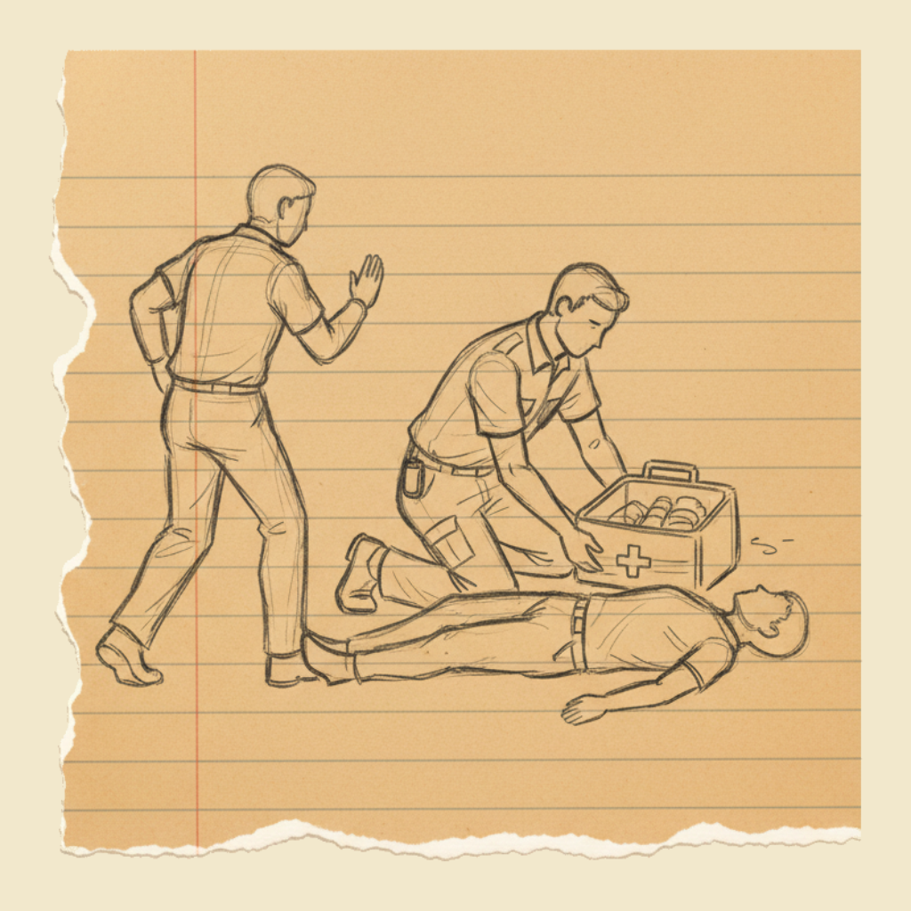 What you should not do is decide, mid-CPR, that "it has been too long" and stop. That is a medical decision and is not within the first aider's scope. The decision tree for the first aider is the six-item list above, and "I think it's been long enough" is not on it.