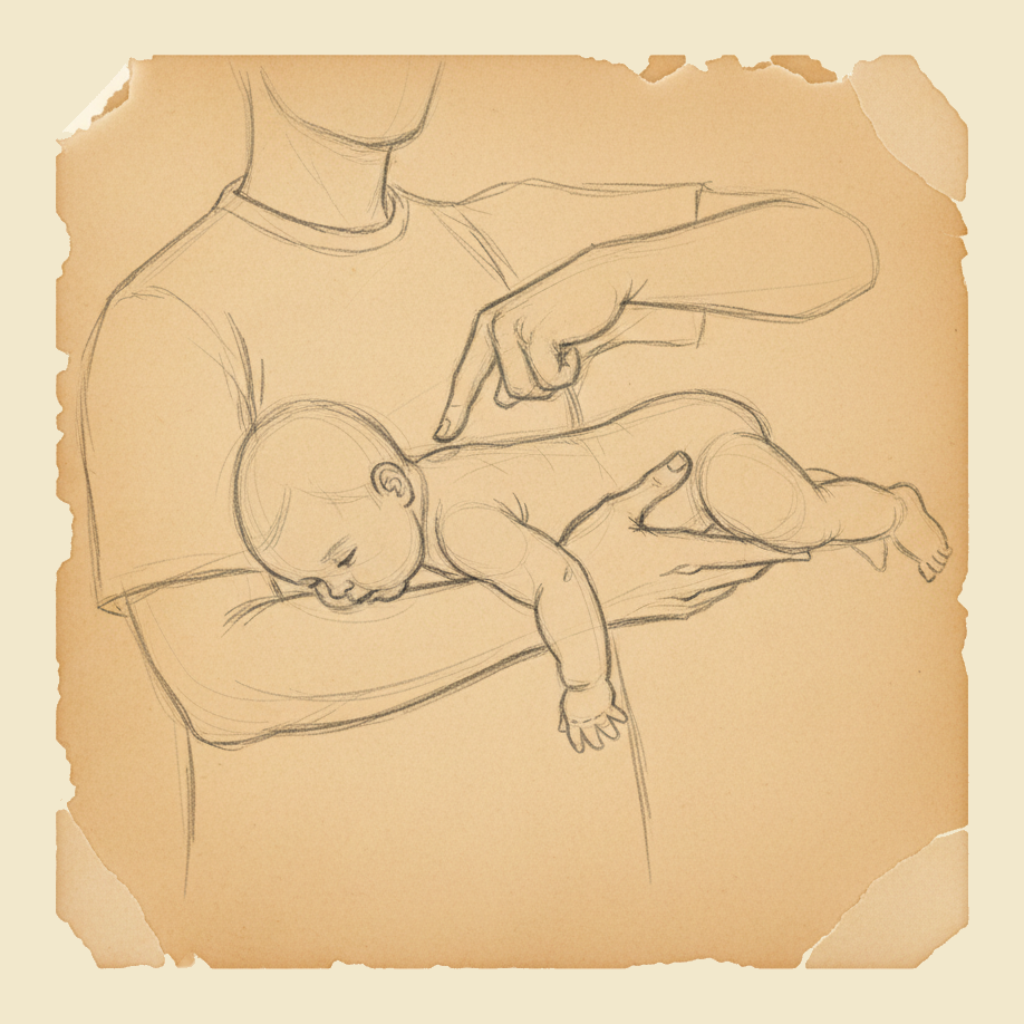 Child over one year: treat as an adult, with proportionate force. Kneel beside or behind them.