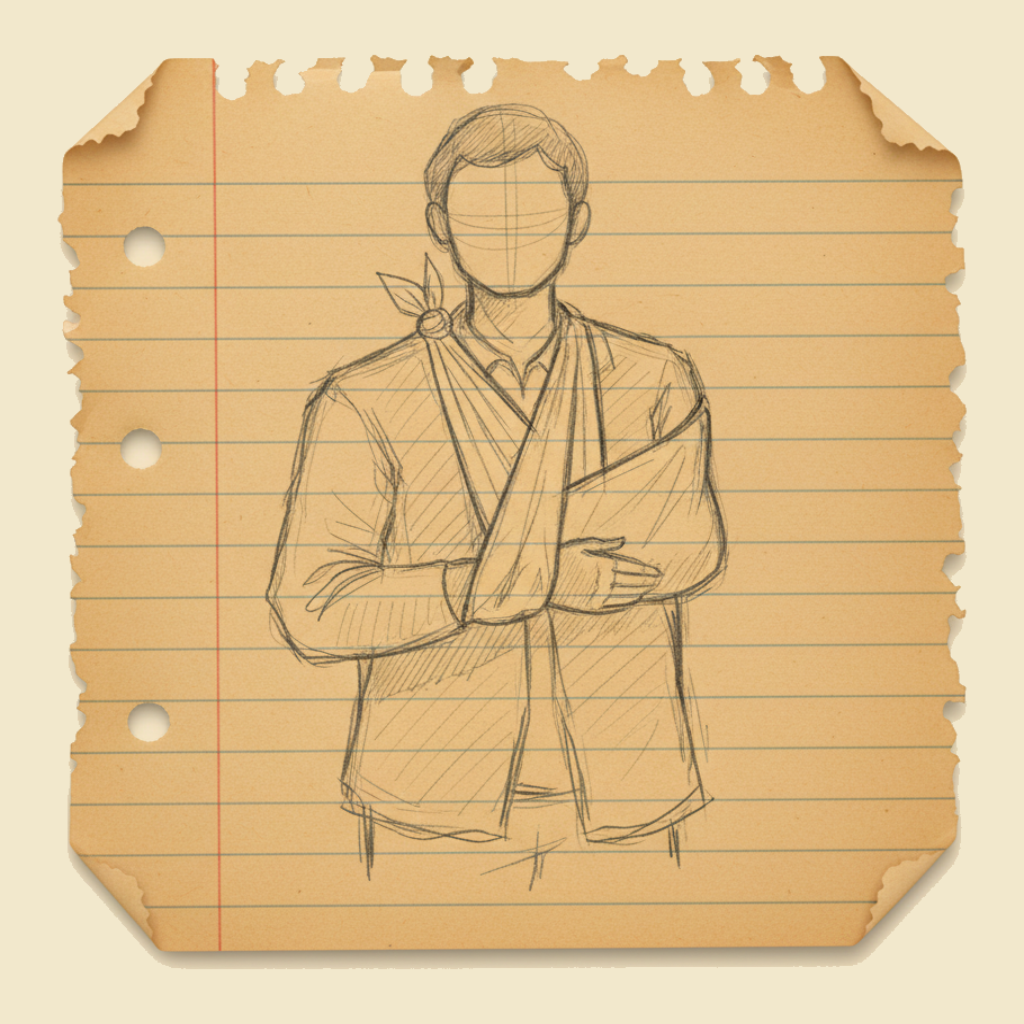 • A broad-arm sling for an injured collarbone, upper arm, or forearm.