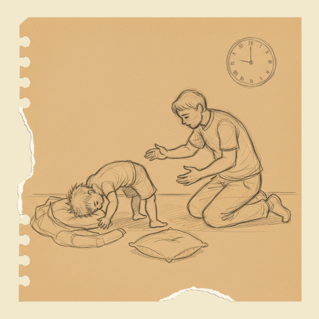 - Move objects out of the way that the child could hit during the shaking — chairs, toys, hard or sharp items. If the child is on a hard surface (concrete, lino), put something soft under the head if you can do so without restraining.