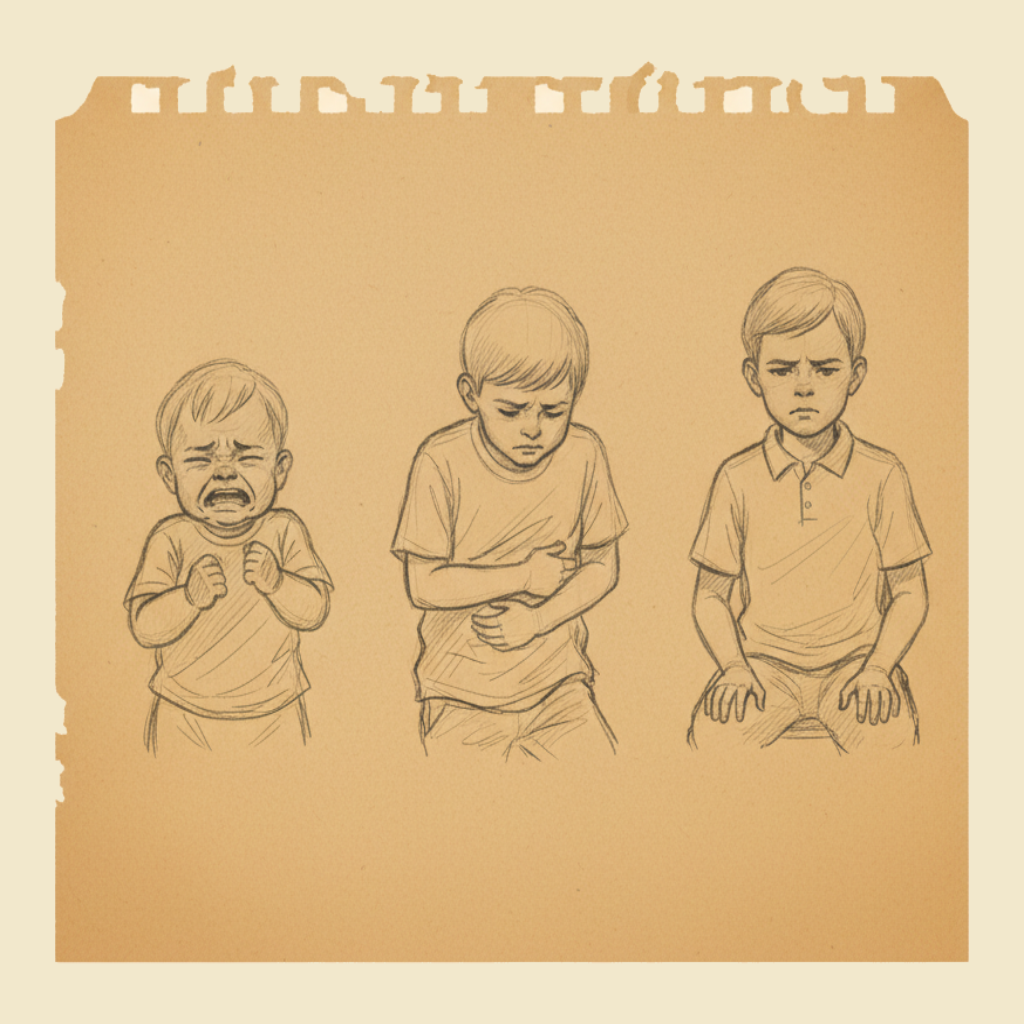 - Withdrawal — going quiet, sitting alone, refusing to join in.